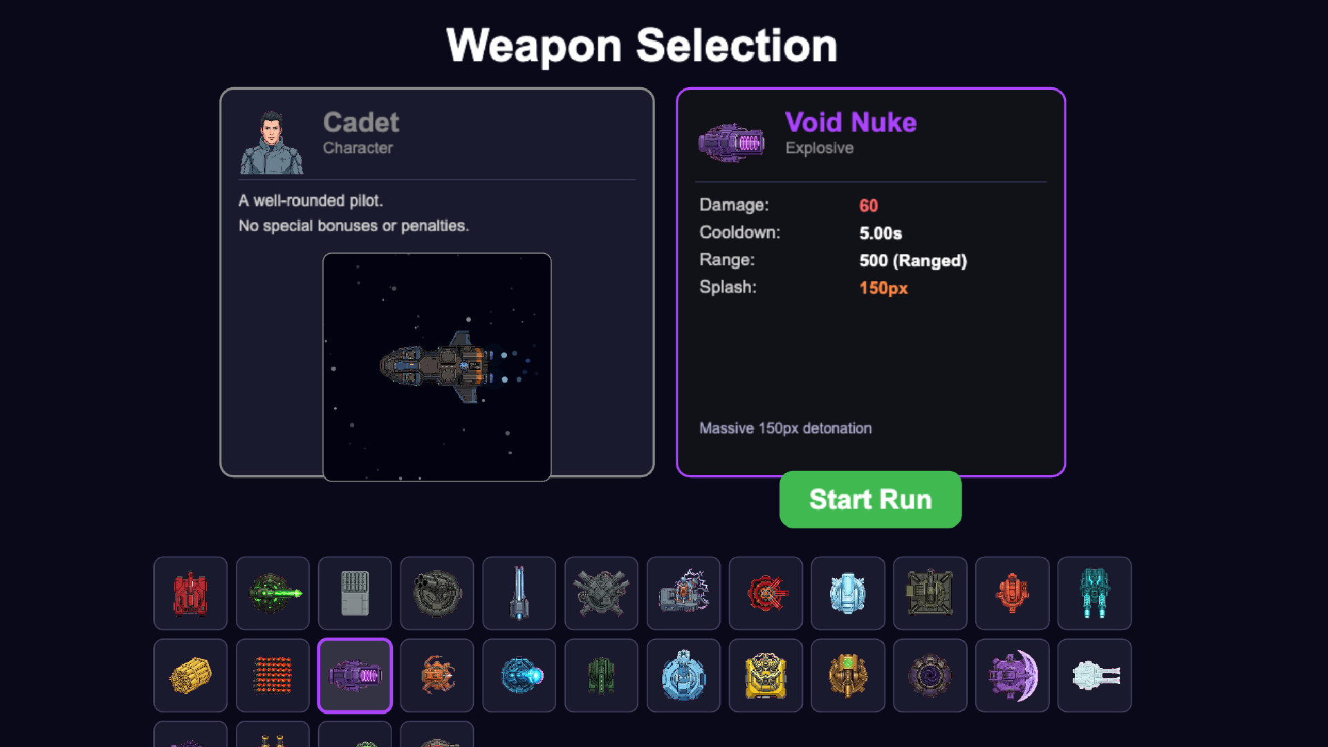 - 6 captains — Cadet, Drone Commander, Asteroid Miner, Interceptor, Station Commander, Void Raider. Each with unique strengths and brutal trade-offs.